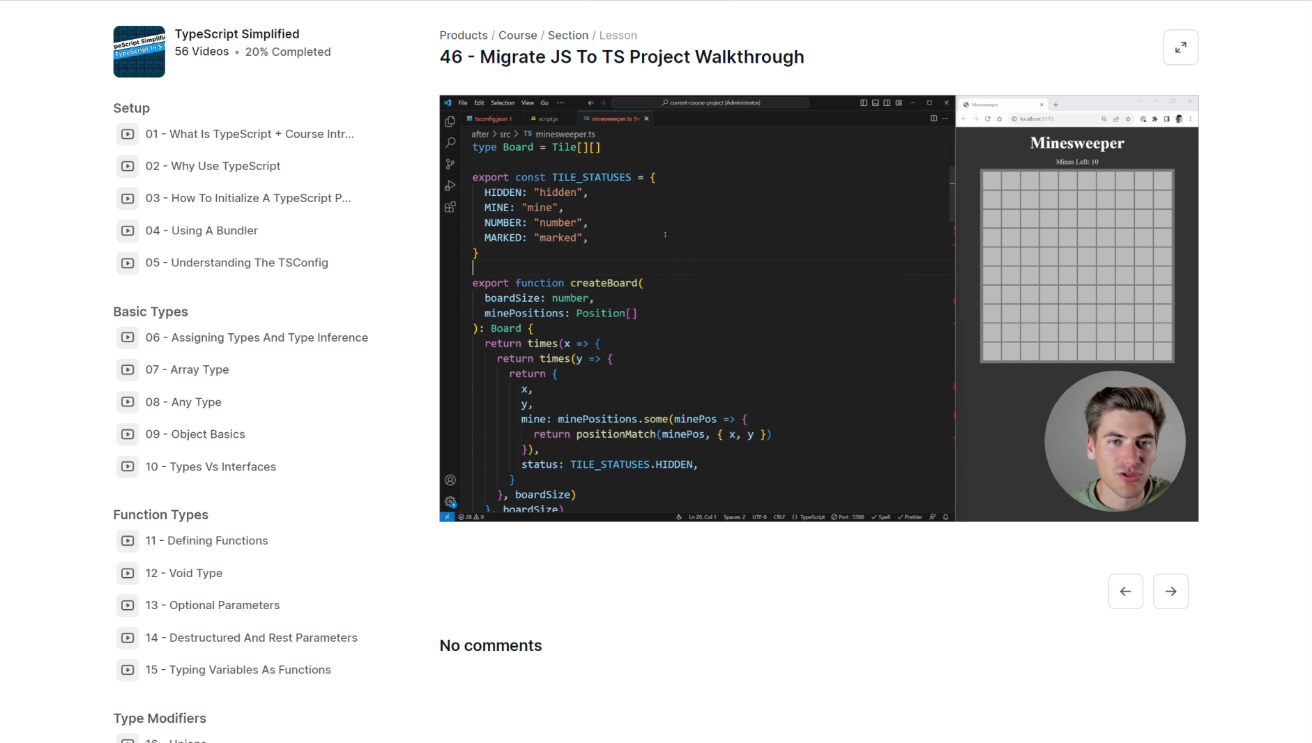 Everything you need to learn TypeScript and build any project you can dream of in 47 easy to digest videos which amount to just under 5 hours of video content.